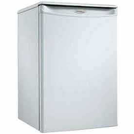 Compact Refrigerator 2.5 Cu. Ft. DAR259W The energy efficient Danby Designer compact all-fridge has a capacity of 2.5 cu. ft. providing ample space for one. At just over 2 feet tall this model can be placed on a counter-top or floor and makes a great addition to the dorm room. It includes our second generation CanStor beverage dispenser, tall bottle storage and our scratch resistant worktop to store accessories. Features: Compact counter-top all fridge Mechanical thermostat Second generation CanStor beverage dispensing system Tall bottle storage - great for large soda bottles Integrated door handle2.5 cu. ft. capacity Automatic defrost system2.5 wire shelves for maximum storage versatility Reversible door swing for convenient left or right hand opening Scratch resistant work top is a great place to store accessories 27.00 L. 20.00 W. 17.63 H.