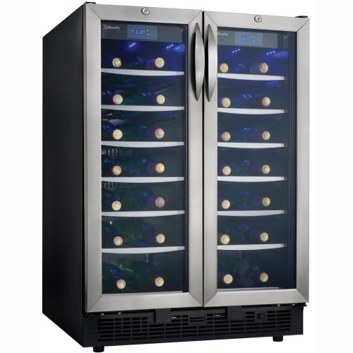 This Danby 54 Bottle Wine Cooler (model: DWC2727BLS) allows you to store and age your favorite bottles of red and white wine at two different adjustable temperatures in the same high-capacity wine cooler. The electronic thermostat with LED display allows